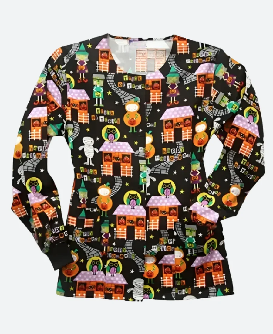Halloween Trick Or Treat Black Scrub Jacket